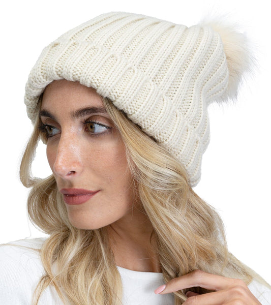 Adrienne Vittadini Dual Pom Pom Knit Beanie