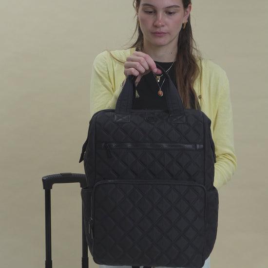 Joan & David Diamond Quilted Puffer Nylon Square Laptop Backpack