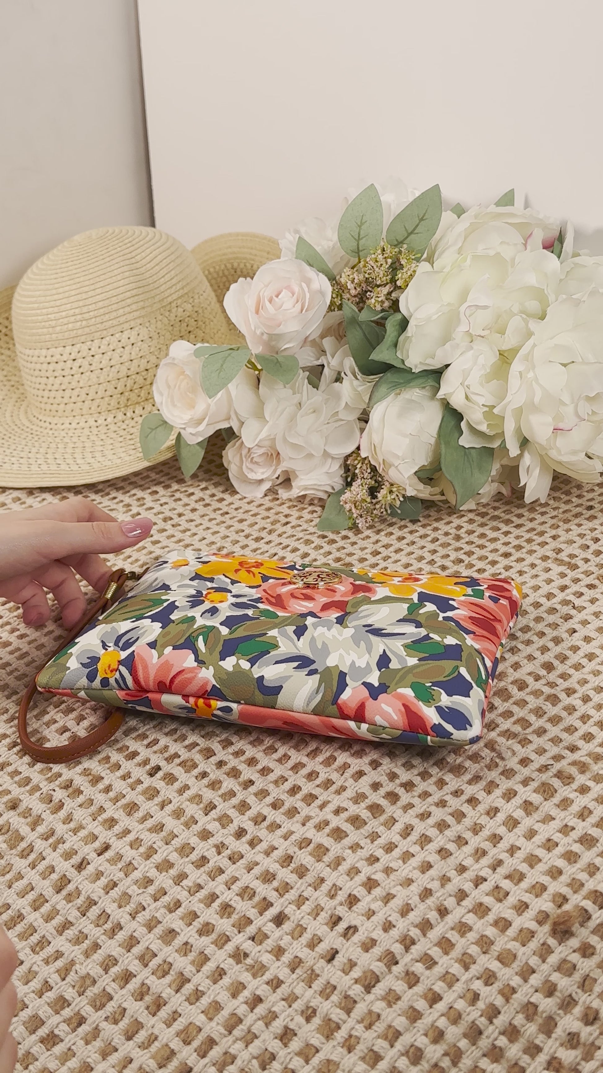 Rebecca & Rifka Floral Print Medallion Zip Wristlet